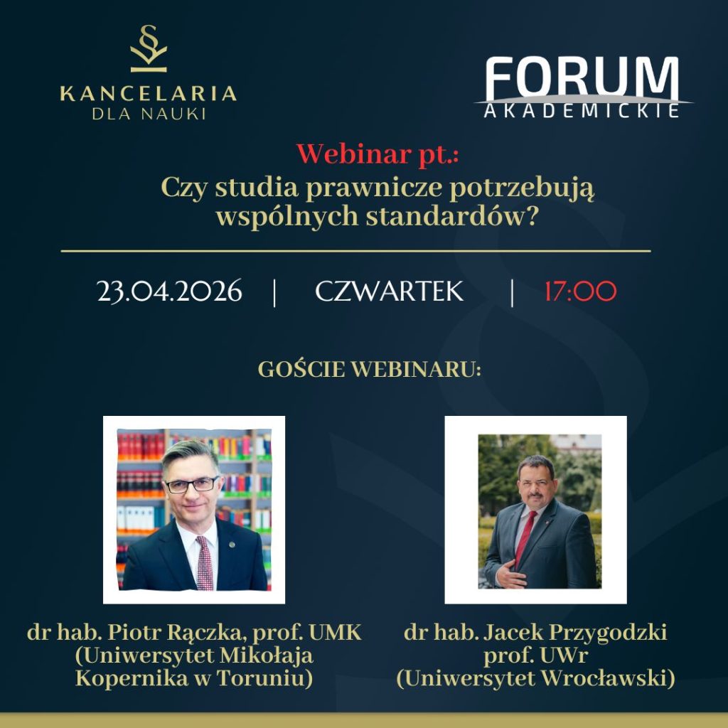 Czy standaryzacja studiów prawniczych jest potrzebna? Jak dziś wygląda kształcenie na kierunku prawo? Czy absolwenci różnych uczelni mają porównywalne kompetencje prawnicze? O tym będzie mowa dziś w trakcie webinaru współorganizowanego przez „Forum Akademickie”. Początek o godzinie 17:00.
