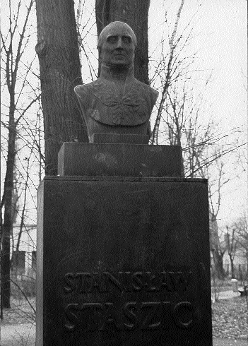 Autorem białogońskiego popiersia jest prawdopodobnie Paweł Maliński, rzeźbiarz, o którym wielokrotnie już pisałem w tym cyklu. Brązowy odlew popiersia Staszica znamy z repliki w Częstochowie i z nagrobka na warszawskich Bielanach.