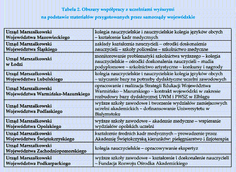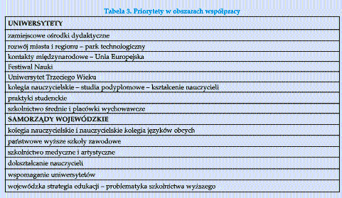 Głównym priorytetem współpracy z uniwersytetami – jak wynika z materiałów nadesłanych przez urzędy marszałkowskie – są zakłady kształcenia nauczycieli, czyli kolegia nauczycielskie i nauczycielskie kolegia języków obcych, których organem prowadzącym są samorządy województw. Zgodnie z odpowiednimi przepisami, warunkiem utworzenia i funkcjonowania kolegium jest zapewnienie opieki naukowo-dydaktycznej uczelni wyższej, w której efekcie słuchacz ma możliwość uzyskania tytułu licencjata, a następnie kontynuowania nauki na uzupełniających studiach magisterskich. W ten sposób, głównie dzięki sprawowaniu opiekuńczych funkcji przez uniwersytet, kilkadziesiąt tysięcy osób nie mających statusu studenta, kształcących się w kilkudziesięciu kolegiach, zdobywa na 3-letnich studiach m.in. atrakcyjne zawody nauczycielskie anglisty i germanisty, nie tracąc szans na uzyskanie tytułu magistra (ogromna to różnica w stosunku do dawnych studiów nauczycielskich i obecnych szkół pomaturalnych). Wypada przy okazji zauważyć, że opieka naukowo-dydaktyczna nad kolegiami wyglądała na początku lat 90. na rewolucyjną próbę wyjścia z działalnością dydaktyczną poza siedzibę uczelni. W ten sposób powstały zamiejscowe ośrodki dydaktyczne (w latach 60., 70. i 80. były one efektem współpracy z zakładami wielkoprzemysłowymi). Nawiasem mówiąc, nikomu wówczas nie przychodziło do głowy kwestionowanie legalności tego typu działań. Minister, z własnej inicjatywy lub na wniosek rektora, poza siedzibą uczelni mógł utworzyć „oddziały, instytuty, katedry, zakłady, zespoły badawcze lub dydaktyczne i inne jednostki organizacyjne”, zgodnie z przepisem art. 8 p. 4 i 5 liberalnej ustawy z 1958 roku. A dzisiaj... myśl, że jednostka organizacyjna posiadająca uprawnienia do nadawania stopnia naukowego doktora habilitowanego może prowadzić studia magisterskie w zamiejscowym ośrodku dydaktycznym wygląda na zadziwiająco śmiałą (wolno je prowadzić tylko w ramach wydziału zamiejscowego lub filii). W ostatnich latach pojawiły się problemy związane z kolegiami. Przeszły one bowiem fazę zagrożenia likwidacją, gdyż pewna ich część włączona została do struktur państwowego wyższego szkolnictwa zawodowego. Zakłady kształcenia nauczycieli to priorytet główny, będący logiczną konsekwencją zadań samorządu województwa jako organu prowadzącego. Ale równie ważnym priorytetem, urastającym czasem do rangi imperatywu edukacyjnego – nie bez przesłanek politycznych – są państwowe wyższe szkoły zawodowe, które mogą być tworzone na wniosek ministra albo właśnie sejmiku województwa, w uzgodnieniu z ministrem. Ponadto w skład konwentu wchodzą obligatoryjnie przedstawiciele samorządu terytorialnego, a jego przewodniczącym bywa np. prezydent miasta. Pozycja szkolnictwa wyższego w zakresie działalności samorządów województw jest wysoka, jakkolwiek nazbyt często zawężana właśnie do ram państwowego wyższego szkolnictwa zawodowego, np. Zarząd Województwa Podlaskiego zamierza zwiększyć dostępność studiów poprzez rozwój wyższego szkolnictwa zawodowego i tworzenie zamiejscowych wydziałów istniejących szkół wyższych. Zarząd Województwa Podlaskiego – trzymajmy się tego przykładu – podjął intensywne starania zmierzające do utworzenia wyższych szkół zawodowych w największych miastach regionu: Suwałkach i Łomży. Idea utworzenia Wyższej Szkoły Zawodowej w Suwałkach oraz Państwowej Wyższej Szkoły Informatyki i Przedsiębiorczości w Łomży – jak czytamy w materiałach – jest zgodna z deklaracjami Rządu RP, towarzyszącymi wprowadzeniu reformy ustrojowej kraju, dotyczącymi: działań osłonowych wobec miast tracących status wojewódzki. Po kolegiach nauczycielskich i państwowych wyższych szkołach zawodowych, trzecim w kolejności priorytetem była transformacja policealnych szkół medycznych w kolegia medyczne, pod patronatem akademii medycznych, prowadzące studia licencjackie z zakresu pielęgniarstwa, położnictwa, fizjoterapii i ratownictwa medycznego (i w tym wypadku zdarzało się przejęcie specjalności nie przez akademię medyczną, ale państwową wyższą szkołę zawodową). Tę transformację należy uznać za duże osiągnięcie samorządów województw, co znajduje swój wyraz w informacjach nadesłanych przez urzędy marszałkowskie województw: lubelskiego, świętokrzyskiego i opolskiego. W układzie: zakłady kształcenia nauczycieli – państwowe wyższe szkoły zawodowe – szkolnictwo medyczne pozycja uniwersytetów w obszarze priorytetów samorządów województw nie jest i zapewne nie może być wysoka. Owszem, silne niekiedy wsparcie godne jest odnotowania, zwłaszcza w wypadku uniwersytetów rozwijających się, często nowo powołanych, pożądających wręcz niezbędnych inwestycji i wsparcia finansowego. Zwracają na to uwagę i uniwersytety (np. Śląski, Warmińsko-Mazurski) i urzędy marszałkowskie (np. województw podlaskiego i podkarpackiego). Kolejnym priorytetem na liście samorządowej jest dokształcanie nauczycieli: realizowane głównie poprzez ośrodki doskonalenia nauczycieli, wyspecjalizowane również w organizacji studiów podyplomowych. Jeszcze kilka lat temu dokształcanie nauczycieli było jednym z głównych priorytetów współpracy samorządów z uczelniami wyższymi, ale obecnie, w sytuacji, gdy nauczyciel z różnych powodów legitymuje się świadectwem lub świadectwami ukończenia studiów podyplomowych, gdy kończą się nabory nauczycieli na te studia i podupadają samorządowe ODN-y, problem dokształcania pedagogów musiał ustąpić miejsca innym zagadnieniom. ISTOTNY ROZZIEWTermin „współpraca” ma konotację pozytywną, gdyż niesie ze sobą myśl o dobrowolnej kooperacji w przestrzeni demokratycznej, funkcjonując jako rodzaj imperatywu moralnego. Jest rzeczą charakterystyczną, że w otrzymanych