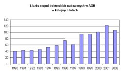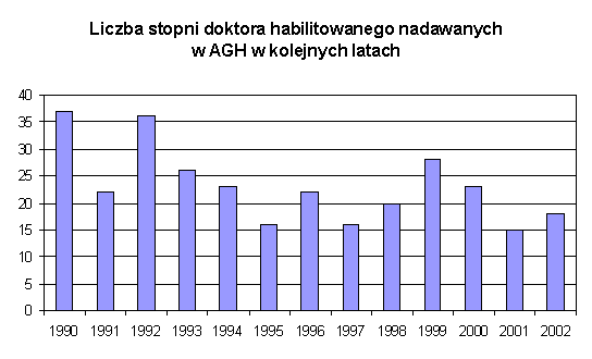 Najtrudniej było znaleźć formułę pozwalającą ująć w postaci jednego syntetycznego wskaźnika całość procesów związanych z kształceniem kadr. Najmniejszą jednostką jest tu niewątpliwie doktorat, gdyż najłatwiej go uzyskać i najwięcej takich promocji uczelnie dokonują. Znacznie trudniej (a w naukach technicznych także kosztowniej, o czym za chwilę) zdobyć habilitację, a wysiłek konieczny do uzyskania tytułu naukowego jest bez wątpienia największy i najkosztowniejszy. W rozważaniach przyjęto formułę sumy ważonej, w której „waga” doktoratu wynosiła 1, „waga” habilitacji 3, a „waga” tytułu profesorskiego 6. Takie wskaźniki wynikały z oszacowań rzeczywistej kosztochłonności procesów zmierzających do osiągnięcia odpowiednich awansów naukowych, a także z zaobserwowanych w większości uczelni proporcji pomiędzy liczbami odpowiednich promocji.