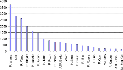 Co wynika z przytoczonych danych? Otóż okazuje się, że stosunek aktywności przodującej (zdecydowanie!) w dziedzinie kształcenia kadry Politechniki Warszawskiej do szkół zajmujących na tej liście końcowe pozycje wyraża się proporcją bliską 20:1. Łatwo sprawdzić, że cztery najaktywniejsze politechniki (Politechnika Warszawska, AGH, Politechnika Wrocławska i Politechnika Śląska) dają łącznie ponad połowę wszystkich kształconych w Polsce kadr naukowych (dokładnie – 52 proc.). Wnioski pozostawiam Czytelnikom, zwracając uwagę, że wyniki te stawiają pod znakiem zapytania zasadność stosowania we wszystkich gremiach (na przykład konferencji rektorskich) reguły całkowitej równości wszystkich uczelni.