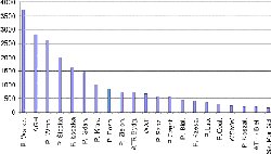 Przeprowadzone badania ujawniły jeszcze jedno interesujące zjawisko, na które także warto zwrócić uwagę. Otóż, wspomniałem wyżej, że nadesłane mi dane ujawniły, jak bardzo różnią się duże i małe szkoły swoją aktywnością na polu kształcenia kadry. Jest to dobra podstawa do porównań, gdyż w odróżnieniu od liczby kształconych studentów, których można wszak przyjąć „ile wlezie”, a także w odróżnieniu od dorobku naukowego, który trudno oceniać ilościowo, bo publikacja publikacji nierówna, w sprawie stopni i tytułów naukowych obowiązują konkretne i sprawdzalne kryteria. Doktorat musi być zaopiniowany przez recenzentów, habilitacja i profesura dodatkowo podlegają kontroli CK. Zatem tu nie wystarczy dobre samopoczucie albo „dojście” do decydentów (przynoszące dobre efekty gdzie indziej, na przykład w postaci środków na inwestycje), żeby uzyskać korzystny wynik. W liczbie promowanej kadry naukowej ujawnia się rzeczywisty potencjał szkoły i tego wyniku nie da się zafałszować. Korzystając z tego, że miałem wszystkie dane dotyczące promocji kadr naukowych w jednoimiennych (technicznych) uczelniach, sporządziłem wykres pokazujący efektywność tej działalności w poszczególnych uczelniach. Za najbardziej miarodajny uznałem diagram prezentujący syntetyczny wskaźnik aktywności szkół (przypomnę, obliczany jako suma liczby wypromowanych doktorów, pomnożonej przez 3 liczby zakończonych habilitacji i pomnożonej przez 6 liczby uzyskanych tytułów profesorskich). Wynik prezentuję na rysunku 4. Na marginesie dodam, że analogiczne wykresy sporządzone osobno dla samych doktoratów, samych habilitacji i samych tytułów profesorskich nic istotnie odmiennego w tym zakresie nie wnoszą.