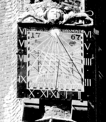 Kiedy myślimy o zabytkach, przed naszymi oczami stają najczęściej monumentalne budowle: piramidy, wspaniałe pałace i zamki, muzea i pomniki. Przeglądając w księgarni albumy tematyczne możemy zobaczyć piękne obrazy, rzeźby, tkaniny. Spotykamy także wzmianki o zabytkach literatury. Mało komu udaje się dostrzec wokół siebie nieco mniej znaną, kto wie czy nie jedną z najmniej docenianych, grupę zabytków. Nikną one w cieniu innych, pozostają często niewidoczne, zaniedbane. Niosą jednak w sobie potężny ładunek, zarówno piękna sztuki, przejawiającego się niekiedy olbrzymim kunsztem wykonania, precyzji nauki, jak i tradycji sięgającej tysięcy lat wstecz. Chociażby ze względu na te cechy zasługują na nieco więcej uwagi. KRÓTKA HISTORIARozwój zegarów słonecznych związany jest nieodłącznie z narodzinami i rozwojem potrzeby świadomego mierzenia czasu. Najbardziej do tego celu nadawały się zjawiska cykliczne, zwłaszcza te, które nasi przodkowie mogli łatwo zaobserwować wokół siebie. Dlatego też najstarszym i najpowszechniej stosowanym zegarem oraz kalendarzem było sklepienie niebieskie, na którego tle nocą pojawiały się gwiazdy i księżyc, natomiast w ciągu dnia wędrowało słońce. W Egipcie, gdzie Słońce było bogiem, owe „smugi cienia” uważano za wskazania samego boga, każda więc świątynia miała przed sobą wysoki obelisk, którego cień wskazywał nadejście pory nabożeństw i modlitw. Podziały czasu, jakich używali egipscy astronomowie, odpowiadały dwunastu momentom, podczas których na firmamencie górują kolejno wszystkie znaki zodiaku. Mówiąc prościej, dzień i noc podzielone zostały na sześć równych części. Ślady takiego podziału dnia znajdujemy do dziś w językach słowiańskich, w tym w języku polskim: poranek, przedpołudnie, południe, popołudnie, przedwieczerze, wieczór. Bardzo szybko przyjęto jednak w astronomii, a potem w powszechnym użyciu, podział dokładniejszy, oparty w zasadzie na poprzednim, lecz dzielący dobę nie na dwanaście, ale na dwadzieścia cztery części. Według podań, do tego podziału przyczyniły się święte sokoły boga Horusa, które przy jego świątyniach oddawały mocz dwanaście razy dziennie. Od nazwy tego słonecznego boga wywodzi się łacińska nazwa godziny – hora. Oczywiście przez cały czas modyfikowano istniejące zegary i jeszcze przed narodzeniem Chrystusa znano w samym Rzymie aż trzynaście ich typów, w tym kilka o znacznej komplikacji budowy. Pewne wyobrażenie o miejscu zegarów słonecznych w życiu Rzymian może dać fakt, że już w II w. p.n.e. zaczęto w Rzymie stawiać zegary słoneczne na placach, a w bogatych domach utrzymywano nawet specjalnych niewolników, których zadaniem było pobiec na żądanie do najbliższego zegara i wrócić z wiadomością, która jest godzina. Mimo że w całym państwie rzymskim zegary słoneczne tak się rozpowszechniły, to jednak sami Rzymianie nie dokonali żadnych ulepszeń w ich konstrukcji. Zasadnicze zmiany wprowadzili Arabowie, zastępując pionowy pręt gnomonu wskazówką równoległą do osi Ziemi. Zegary z tą wskazówką, zwaną polosem, stały się znaczącym ulepszeniem w stosunku do typów poprzednich, które posługiwały się cieniem końca pionowego gnomonu. Wskaźnikiem czasu stał się bowiem nie punkt przesuwający się po podziałce w rozmaity sposób, zależnie od pory roku, lecz linia cienia, której położenie zależy tylko od pory dnia, a nie od miesięcy. W EUROPIE I W POLSCE