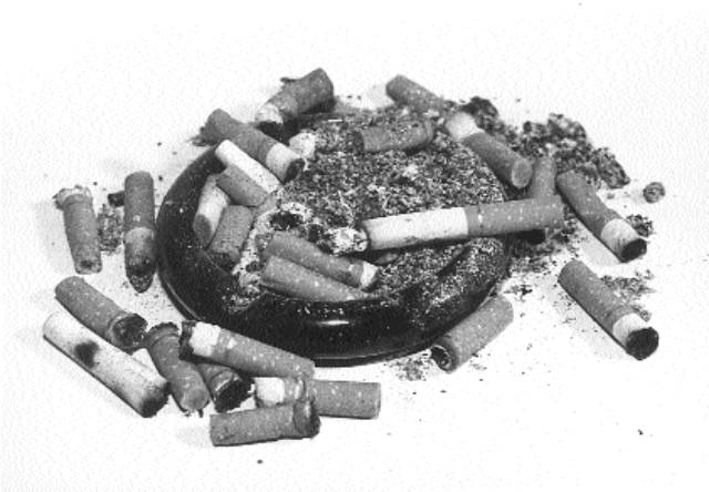 zbieranych na filtrach wypalanych papierosów, wpływ ma błękitny dymek unoszący się w postaci