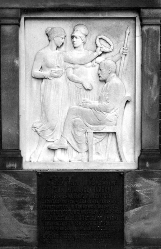 Wrocławski pomnik Jana Mikulicza-Radeckiego to w naszym pomnikowym cyklu dzieło nietypowe z dwóch powodów: po pierwsze jest płaskorzeźbą, co rzadko się zdarza, po drugie - utrzymany jest w szczególnej konwencji. Hellenistyczne postaci mitologiczne: Higieja, bogini zdrowia, córka Asklepiosa (Eskulapa) i Pallas Atena wieńczą głowę siedzącego profesora. Pozy postaci, trzymane w rękach atrybuty, harmonia kompozycji - realizują wzorzec klasycystyczny, któremu poddane jest także wyobrażenie lekarza (długa szata). Artysta złożył hołd zasłużonemu profesorowi za pomocą klasycystycznej konwencji.