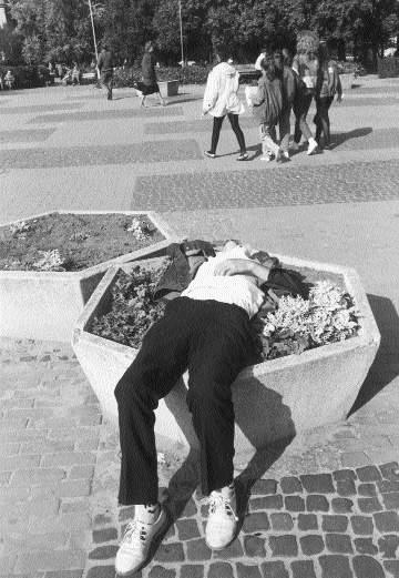 II. Obrazek z ulicy, jakich ostatnio wiele. Gdzieś w Polsce. Niedaleko baru piwnego albo dyskoteki czterech wyrostków okłada człowieka w średnim wieku. Są rozgrzani, mają czerwone twarze. Biją pięściami, kopią: plecy, tyłek, brzuch, głowa. Człowiek krzyczy, ale słowa giną w hałasie przekleństw i razów. Jeden z napastników sięga po oparty o ścianę kij baseballowy. Ulica nie jest bynajmniej opustoszała. Jest przed wieczorem, ludzie przechodzą obok, zerkają kątem oka i przyspieszają kroku. Dopiero jakaś staruszka z naprzeciwka dzwoni na policję, jednak ten incydent nie kończy się happy endem. Podobnie jak inny, podobny. Opowiadano mi historię z ostatnich tygodni o parze zaczepionej przez pijanego żula w parku. Podczas gdy żul walił narzeczoną w twarz, narzeczony uciekał, gdzie pieprz rośnie ("po pomoc").