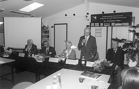 Pierwszy dzień obrad poświęcono przedstawieniu sytuacji niektórych bibliotek uczelni niepaństwowych. Omówiono też wyniki ankiety, którą rozesłano do 137 takich bibliotek. Na wstępie referenci zaznaczyli, że ankieta nie spełniła oczekiwań, gdyż odpowiedziało na nią tylko 46 placówek (33 proc.). Na podstawie nadesłanych odpowiedzi można z całą pewnością stwierdzić, że księgozbiór tych bibliotek jest bardzo specjalistyczny (odpowiada potrzebom edukacyjnym uczelni) i aktualny. Charakter, poziom i kierunek działania bibliotek zależy w dużym stopniu od tego, kim są założyciele uczelni. Gdy są to prywatni inwestorzy, którzy znaleźli w szkolnictwie wyższym swoje miejsce, biblioteka ogranicza się tylko do udostępniania księgozbioru. Mówiono także o pozytywnej funkcji współdziałania bibliotek uczelni niepaństwowych z bibliotekami publicznymi. Modelem takiej współpracy jest Biblioteka Wałbrzyskiej Wyższej Szkoły Zarządzania i Przedsiębiorczości oraz dawna Wojewódzka Biblioteka Publiczna w Wałbrzychu. To jeden z możliwych sposobów pokonywania trudności finansowych, z którymi borykają się biblioteki publiczne.