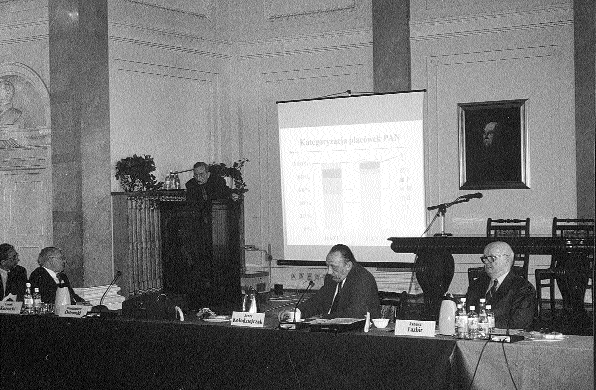 Docelową strukturą organizacyjną części badawczej Akademii miałoby być posiadające osobowość prawną Centrum Badawcze. Dysponowałoby ono znacznie większą niż obecnie samodzielnością finansową, zarówno w zakresie finansowania podmiotowego – fundusze statutowe, jak i przedmiotowego – granty na duże programy badawcze. Komisja zaproponowała trzyetapowy proces tworzenia Centrum. Pierwszy krok to ocena wszystkich placówek naukowych Akademii przeprowadzana przez zespoły powołane na wniosek prezesa PAN oraz ministra nauki. Po dokonaniu przeglądu najlepsze placówki stworzyłyby strukturę federacyjną – konsorcjum, w którym zachowają obecny zakres autonomii. Etap drugi to powołanie niezależnych od rad naukowych 3-5-osobowych rad doradczych prezesa PAN. Do ich zadań należałoby opiniowanie zamierzeń naukowych jednostki, a także okresowa ocena jej działalności badawczej. Etap trzeci to przekształcenie struktury federacyjnej w Centrum Badawcze mające osobowość prawną i finansowane przez KBN, jako odrębny podmiot naukowy. Zmiany miałyby dotyczyć także części korporacyjnej Akademii. Zaproponowano likwidację podziału na dotychczasowe dwie kategorie członków: członków korespondentów i członków rzeczywistych, skrócenie kadencji władz do 3 lat i rozważenie ograniczenia wieku nowo przyjmowanych członków Akademii. Zespół zaproponował też trzy warianty organizacji wydziałów PAN: zmniejszenia ich liczby do 3, do 5 lub pozostawienie obecnej struktury 7-wydziałowej. Istotnym elementem reformy ma być także podniesienie rangi komitetów naukowych PAN – co może prowadzić do zmniejszenia ich liczby – oraz konieczność systemowego powiązania PAN z uczelniami, np. poprzez wymienne zatrudnianie pracowników obu pionów nauki na etatach kontraktowych i wspólne uczestniczenie w dużych projektach badawczych.Obecny na posiedzeniu prof. Michał Kleiber, minister nauki, będący wcześniej także członkiem prezydium PAN, powiedział, że podstawową bolączką jest chronicznie niedofinansowanie nauki polskiej, ale kolejną – niedostosowanie struktury badawczej do wyzwań, jakie stoją dzisiaj przed nauką. – Potrzebne są zmiany w całym sektorze badań naukowych. alternatywą jest stagnacja. Zdecydowanie popieram koncepcję zmian – mówił minister. W dyskusji nie wszyscy zgadzali się z potrzebą tak radykalnej reformy. Mówiono np. że zamiast usprawnić działanie Akademii wiele można zniszczyć, ale przeważały głosy, że zmiany są konieczne. Prof. Jerzy Kołodziejczak, pełniący obowiązki prezesa PAN, prosił o nadsyłanie pisemnych propozycji rozwiązań i podkreślał, że dla realizacji celów, jakie są stawiane dziś przed Akademią i całą nauka, zmiany są konieczne, ale oczywiście muszą to być zmiany akceptowane przez środowisko naukowe Akademii.