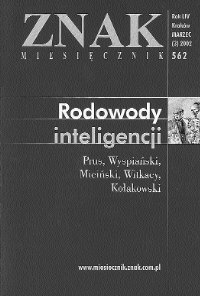 Marcowy numer „Znaku” (3/2002) przynosi obszerny blok pod tytułem Rodowody inteligencji. Jest on nawiązaniem do tematyki numeru 2/2001, w którym przypomniano Conrada, Sienkiewicza, Brzozowskiego, Boya, Irzykowskiego i Szujskiego. Tym razem za „mistrzów polskiej inteligencji” redakcja wzięła sobie Prusa, Wyspiańskiego, Micińskiego, Witkacego i Kołakowskiego. Blok jest próbą konstrukcji liberalnej linii w polskim myśleniu o jednostce i społeczeństwie.