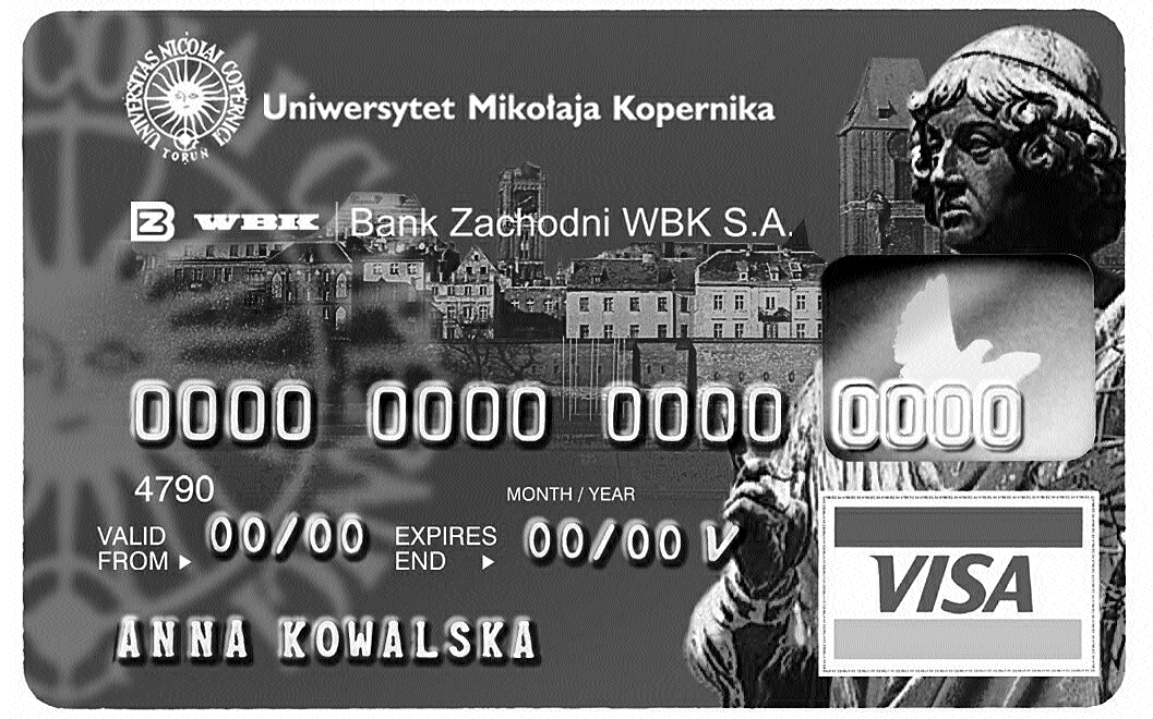 W październiku pojawiła się na rynku karta kredytowa „Uniwersytet Mikołaja Kopernika” wydana przez Bank Zachodni WBK. Część dochodu z jej sprzedaży przeznaczana będzie na rzecz toruńskiej uczelni. Promocję karty wspiera prof. Aleksander Wolszczan, którego wizerunek znalazł się na ulotce i plakacie reklamującym kartę. – Tego rodzaju karta to znakomity sposób na promocję uniwersytetu, a także pomoc w jego dalszym rozwoju – twierdzi prof. Wolszczan. – Myślę, że ta atrakcyjna i skuteczna forma wspierania uczelni przyciągnie wszystkich, którym jest ona bliska.