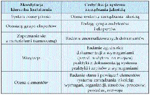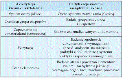 Życie akademickieCertyfikacja jest oceną systemu zarządzania jakością, zaś akredytacja Kazimierz Dendura Upowszechnienie kształcenia młodzieży w kilkuset uczelniach publicznych i niepublicznych spowodowało, że zarówno Ministerstwo Edukacji Narodowej i Sportu, jak i Rada Główna Szkolnictwa Wyższego starają się od lat zapobiec obniżaniu jakości kształcenia. Rada Główna opracowała minima programowe i kadrowe (wprowadzone obecnie przez MENiS jako obowiązkowe), a w poszczególnych typach uczelni (uniwersytetach, uczelniach technicznych, ekonomicznych itp.) ustalono procedury oraz kryteria oceny i akredytacji przez komisje środowiskowe. Powołanie (w znowelizowanej ustawie o szkolnictwie wyższym z 20 lipca 2001) Państwowej Komisji Akredytacyjnej również potwierdza, że władze państwa widzą potrzebę oceny jakości kształcenia poprzez akredytację kierunków studiów. W wyniku badania wdrożonych w uczelniach wyższych i certyfikowanych systemów zarządzania jakością stwierdzono, że w procesie akredytacji przez PKA kierunków kształcenia mogą być wykorzystane rozwiązania i wyniki osiągane w tych uczelniach. Z porównania terminologii oraz jej praktycznych zastosowań we wdrożonych w uczelniach systemach zarządzania jakością wynika, że terminy dotyczące zarządzania jakością są rozumiane jednoznacznie. W praktyce jako „organizacja” wdrażająca system zarządzania jakością w uczelni wyższej może być certyfikowana katedra, wydział, pion uczelni (np. pion administracyjny) lub cała uczelnia. Na skrótowe tylko omówienie zasługują tutaj takie pojęcia, jak proces, jakość oraz akredytacja i certyfikacja systemu zarządzania jakością. PROCES KSZTAŁCENIA