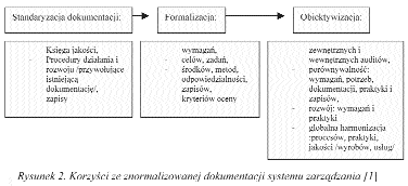 wymagań oraz mierników i kryteriów oceny wszystkich procesów, składających się na kształcenie. Dlatego w systemie jest potrzebne udokumentowanie (kto, co, jak, kiedy, gdzie, wynik itd.) wszystkich procesów, a nie tylko procesu podstawowego – dydaktycznego. Procedury systemu zarządzania jakością pozwalają wykorzystać także niezwerbalizowaną, „cichą” wiedzę pracowników, służącą rozwojowi jakości, poprzez sprzężenia zwrotne i wyprzedzające w systemie. Tradycyjna wiedza operacyjna – jako zdolność do adekwatnego reagowania i przystosowania – zostaje poszerzona o operowanie wiedzą: wymiana w ramach systemu, przewidywanie i planowanie działań oraz restrukturyzacja wiedzy dotychczasowej uczestników wymiany. Rozwój – w tym przypadku kompetencji (wiedzy, umiejętności i nastawienia) – to bowiem nie tyle wzrost ilościowy, ile zmiany jakościowe, zmiany dotychczasowych narzędzi oraz metod myślenia i działania. Ta zmiana wynika m.in. z restrukturyzacji takich dotychczasowych zasobów, jak język (i znaczenia słów), punkty widzenia, założenia, schematy poznawcze, skale wartości itp.