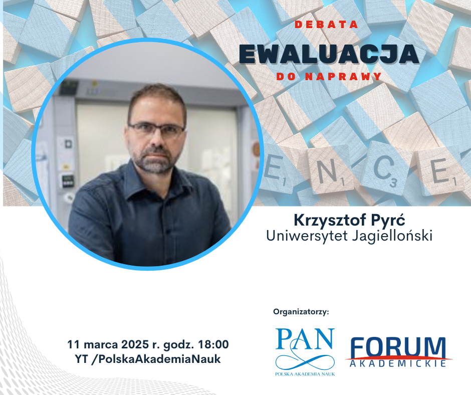 Prof. Krzysztof Pyrć, wirusolog z Małopolskiego Centrum Biotechnologii Uniwersytetu Jagiellońskiego i prezes-elekt Fundacji na rzecz Nauki Polskiej, jest kolejnym uczestnikiem naszej przyszłotygodniowej debaty o nowej ewaluacji. Wydarzenie organizujemy we współpracy z Polską Akademią Nauk.