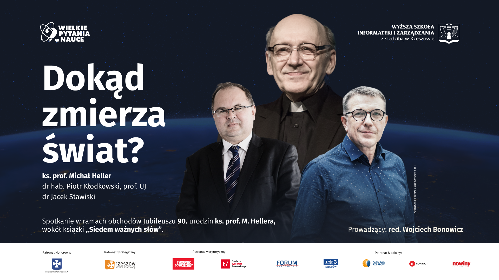 Punktem wyjścia do dyskusji jest najnowsza książka ks. prof. Michała Hellera pt. „Siedem ważnych słów”. Spotkanie jest częścią obchodów jubileuszu 90 urodzin autora.